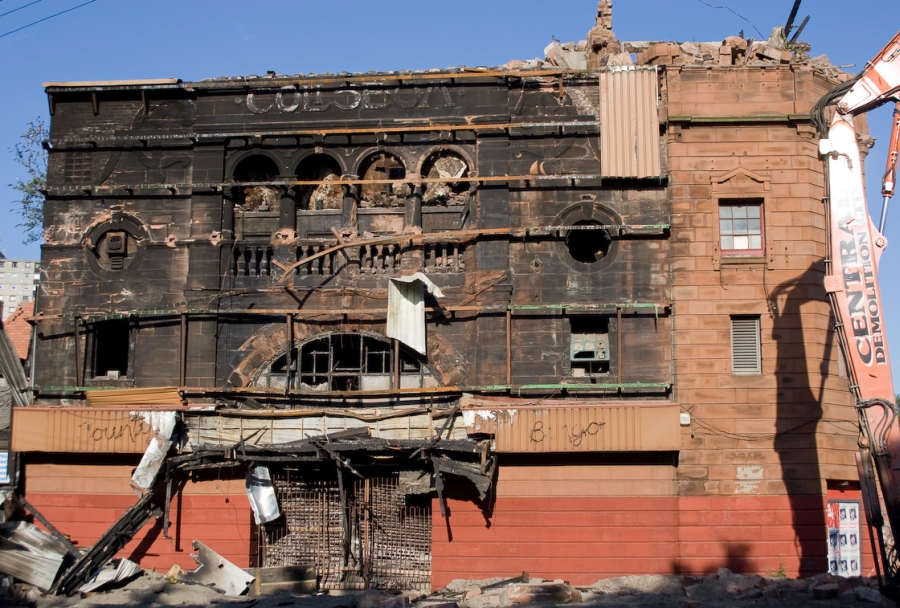 Image above of the original frontage, briefly revealed during demolition works, courtesy of Steven Parkes
